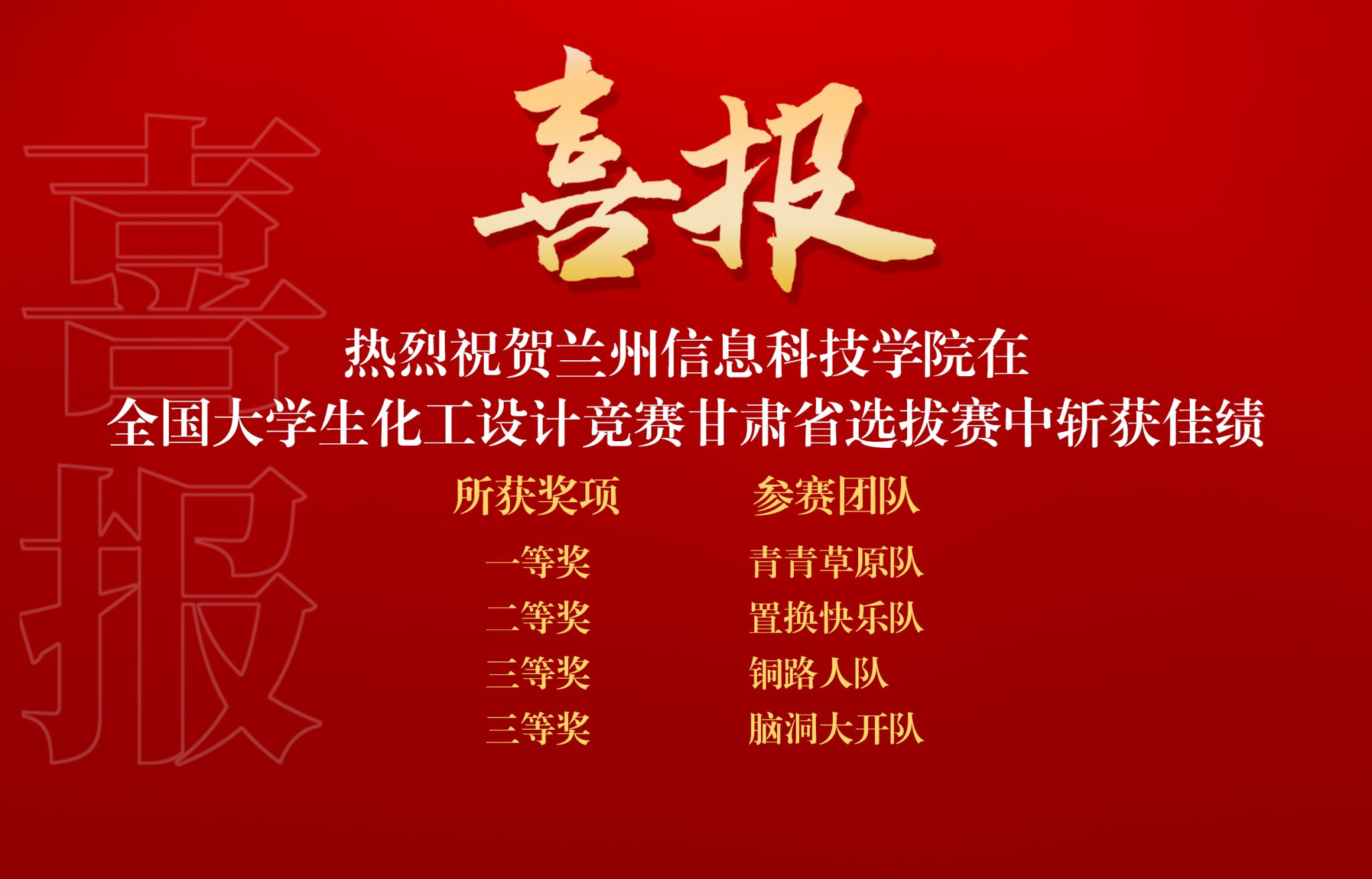 近日,由甘肃省教育厅主办的甘肃省第三届全国大学生化工设计竞赛圆满落幕。本次大赛共吸引了全省20多所高校团队参赛,BEAT365英国官网参赛队荣获一等奖1项、二等奖1项、三等奖2项,将出征全国大学生化工设计竞赛。