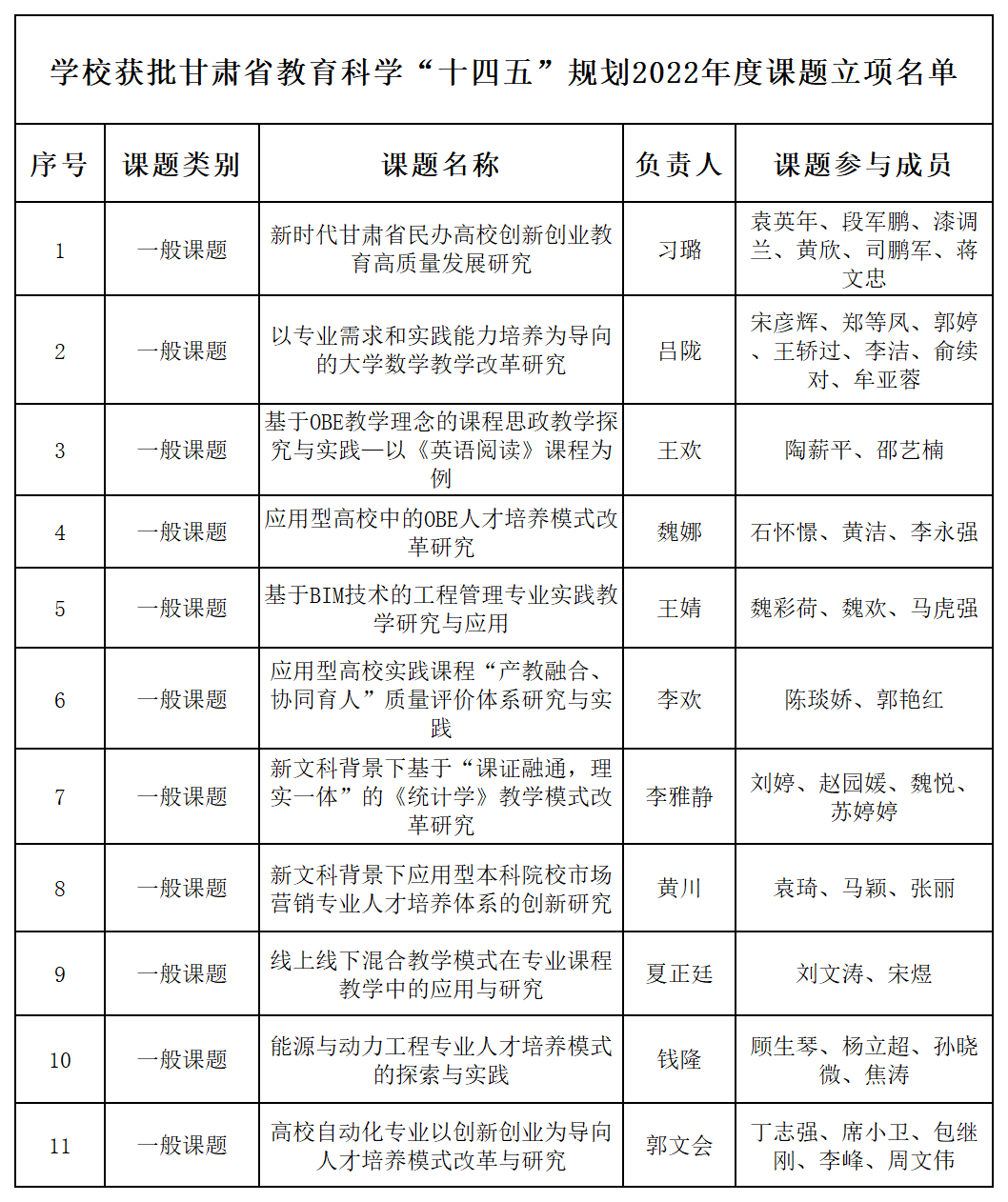 学校获批11项甘肃省教育科学“十四五”规划2022年度课题