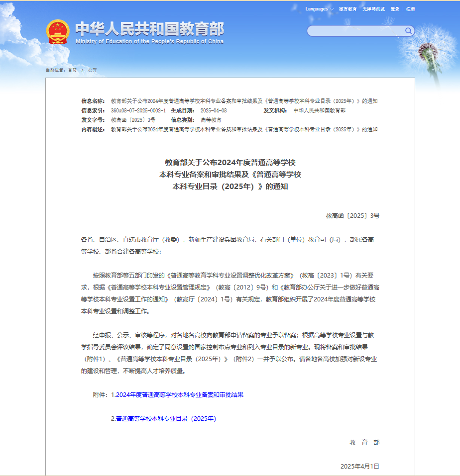 近日,教育部发布了《关于公布2024年度普通高等学校本科专业备案和审批结果》的通知(教高函[2025]3号),BEAT365英国官网申报的无人驾驶航空器系统工程(专业代码082009T;授予门类:工学;修业年限:四年),信息安全(专业代码080904K;授予门类:工学;修业年限:四年),顺利通过教育部本科专业备案,将于2025年秋季正式招生。这一突破性进展标志着学校在前沿科技教育领域的又一重大步伐。