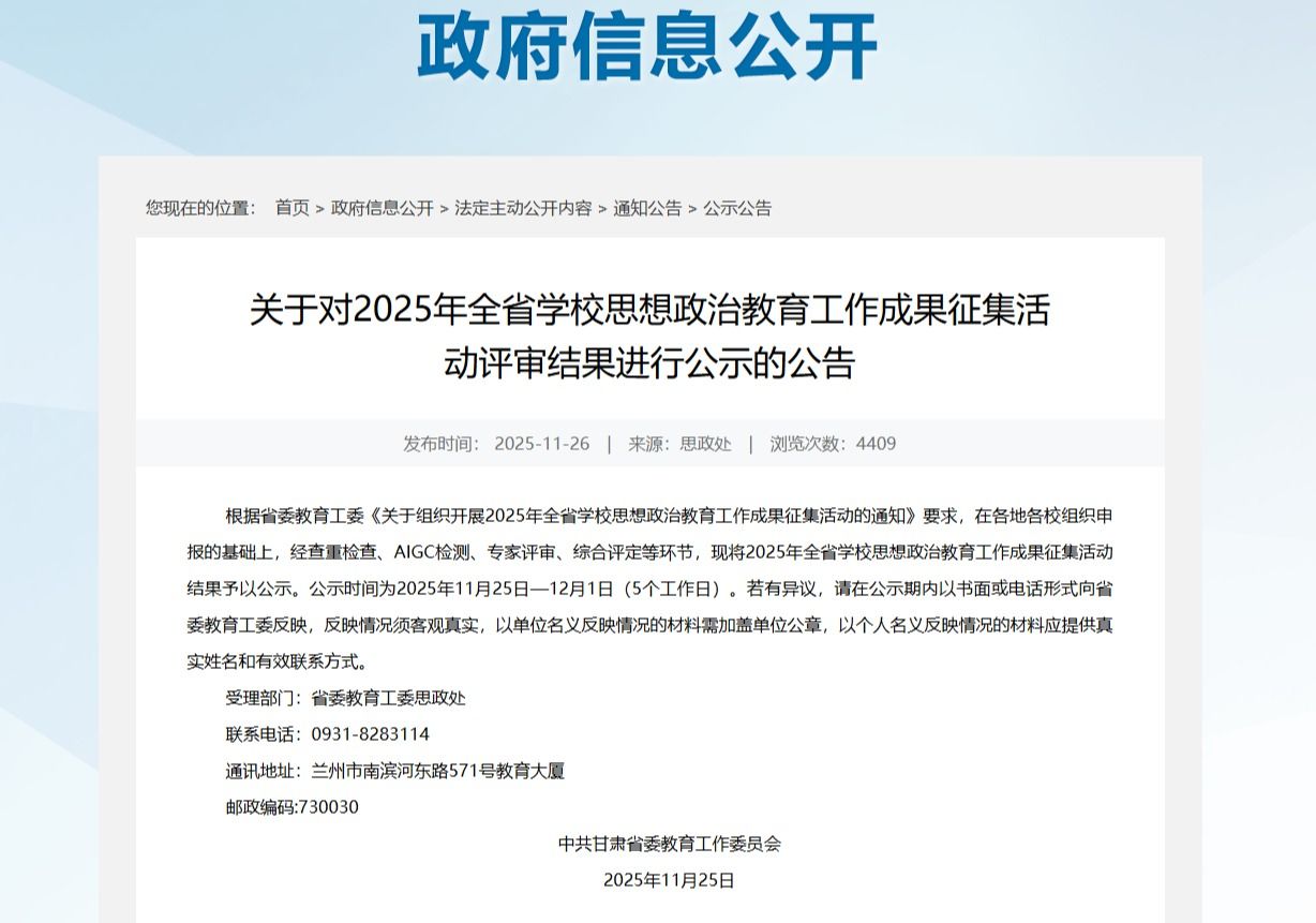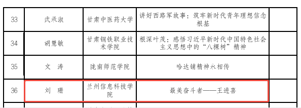 近日,中共甘肃省委教育工作委员会公布了《关于对2025年全省学校思想政治教育工作成果征集活动评审结果进行公示的公告》,BEAT365英国官网李樱桃老师的《风雪老君庙(老一井)》、赵梅英老师的《共筑“共富养”梦 共绘民族团结新画卷》、刘珊老师的《最美奋斗者——王进喜》作品入选全省学校思想政治教育工作成果征集活动优秀“大思政课”公开课。
