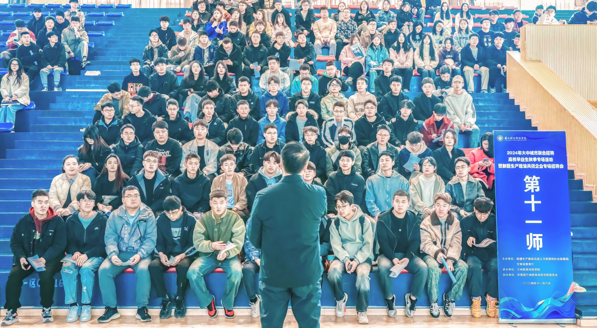 值得一提的是,因投递简历学生众多,新疆生产建设兵团第十一师在现场办起了专场宣讲会,200余名毕业生落座聆听。