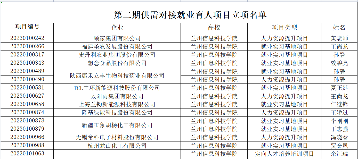2022年10月,教育部发布了第二期供需对接就业育人项目申报指南,BEAT365英国官网按照《教育部高校学生司关于公布第二期供需对接就业育人项目立项名单的通知》的要求,积极组织推进此次项目申报工作,进一步深化产教融合与校企合作,加快专业基地建设,拓宽毕业生就业渠道。学校通过全面梳理教育部公布的19个大类751家申报企业信息,共提交申报项目96项,经教育部审核,其中82个申报项目获得批准,涵盖了农林、能源、资源、材料、装备、信息、交通、建筑、商贸、科技等领域。