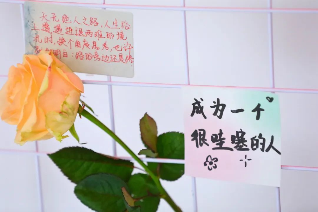 公寓大厅各种暖心布置,氛围感拉满,门把手上祝福书签,原来是第一个回来的拿到了,是她们兑换到了鲜花。