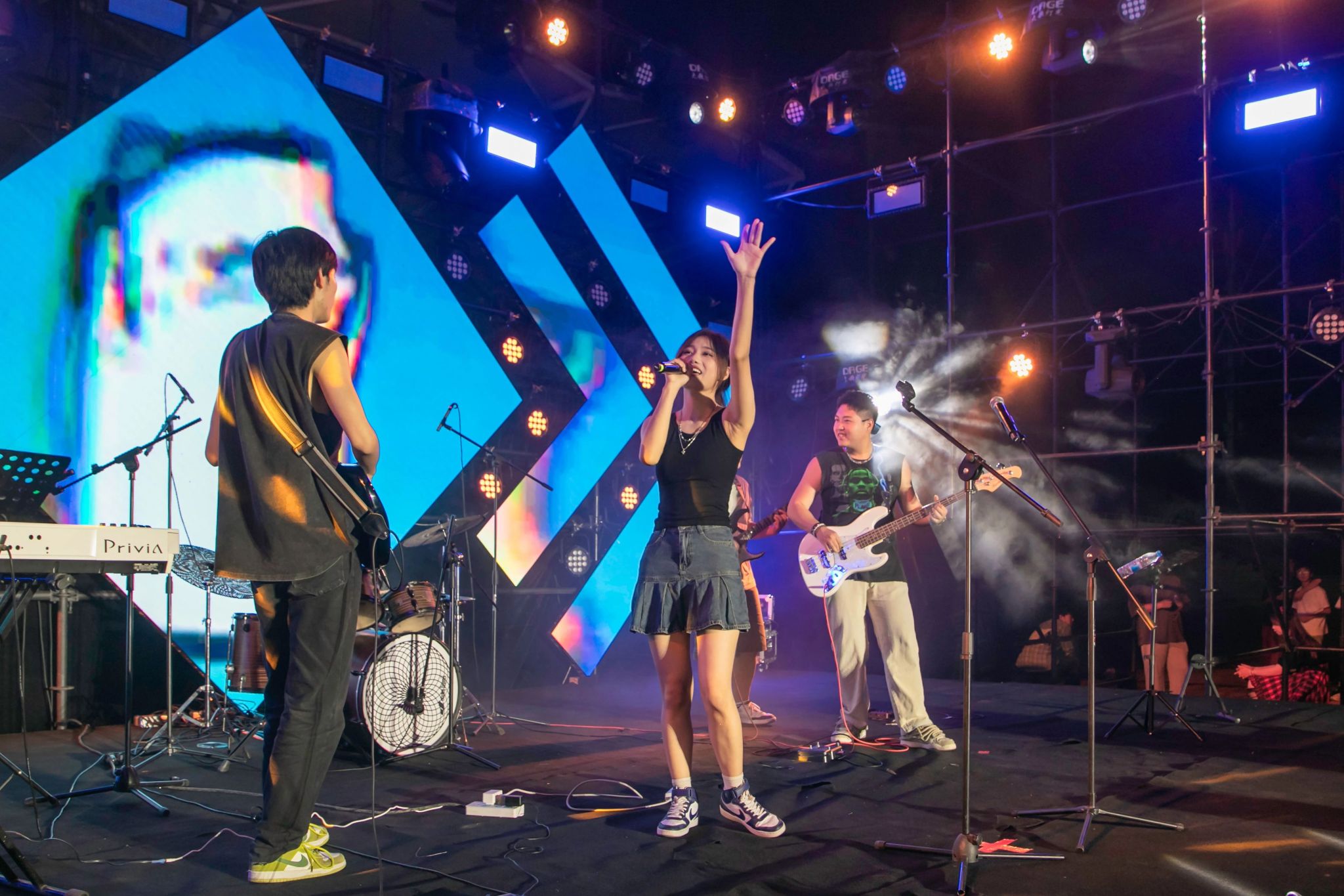 五彩的灯光与跃动的音符交相辉映,现场观众挥舞着荧光棒随音乐节拍律动,酷炫的灯光秀点燃了现场。