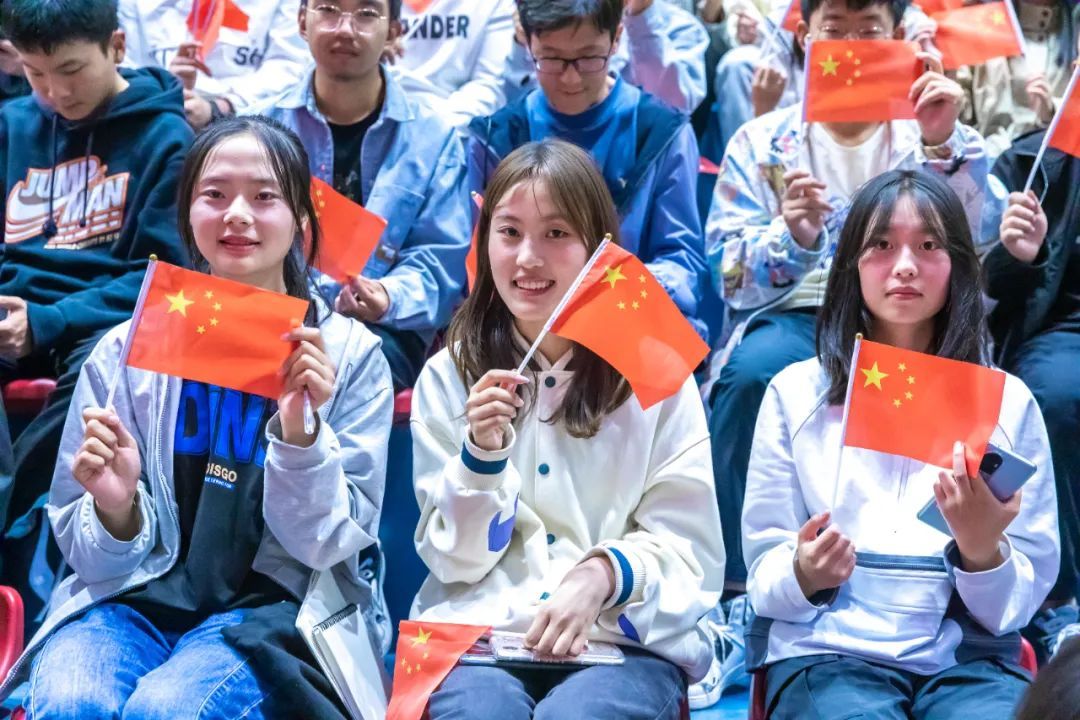 欲治其国者,先齐其家;欲齐其家者,先修其身;欲修其身者,先正其心。千年前的大学之道响彻体育馆,全场师生齐诵《大学》,在历史和现实的交错间,赓续兰科精神血脉,传递出兰科人,“自强、卓越、报国”的坚定信念。
