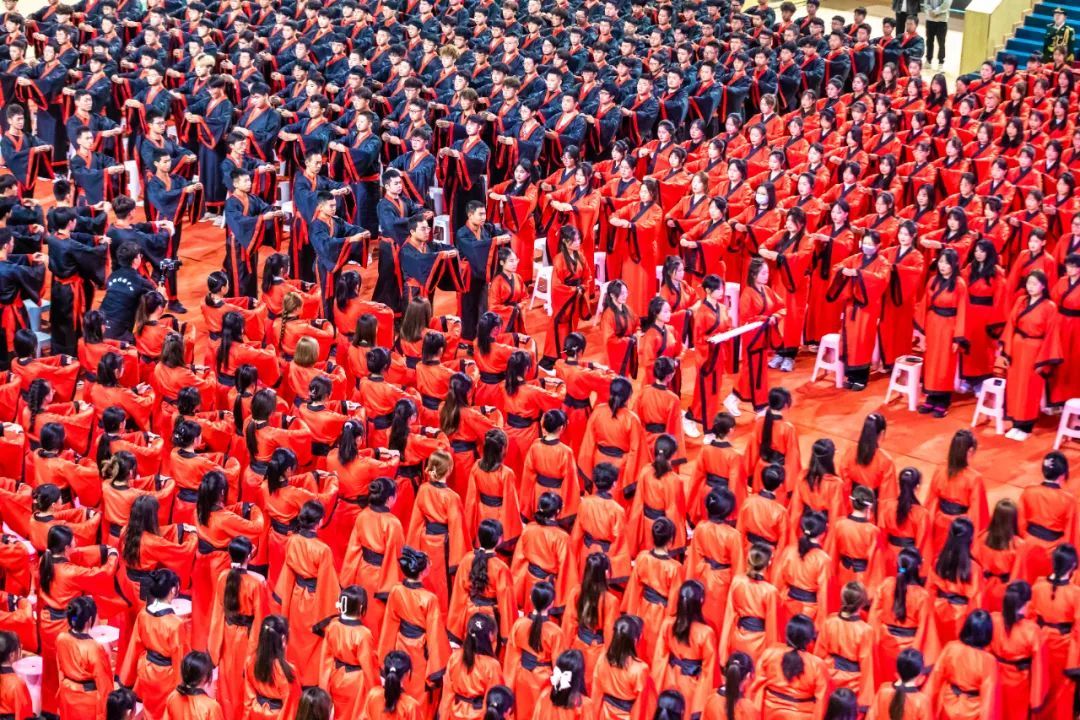 全校师生在体育馆举行了“怀报国之志·遨星辰大海”开学大典,最为震撼的“尊师礼”同学们老师们身着汉服让人眼前一亮。作为一个新时代学子在平时对这样的礼仪仅限于了解,这次有幸能参与其中深深的感受到了古文化带给我们的震撼,由校长带领全体师生诵读《大学》时响亮且浓厚的声音仿佛时光汇聚、不断碰撞,古往今来时代长河在变但作为学子的我们永远对传统文化、礼仪保持着敬意。