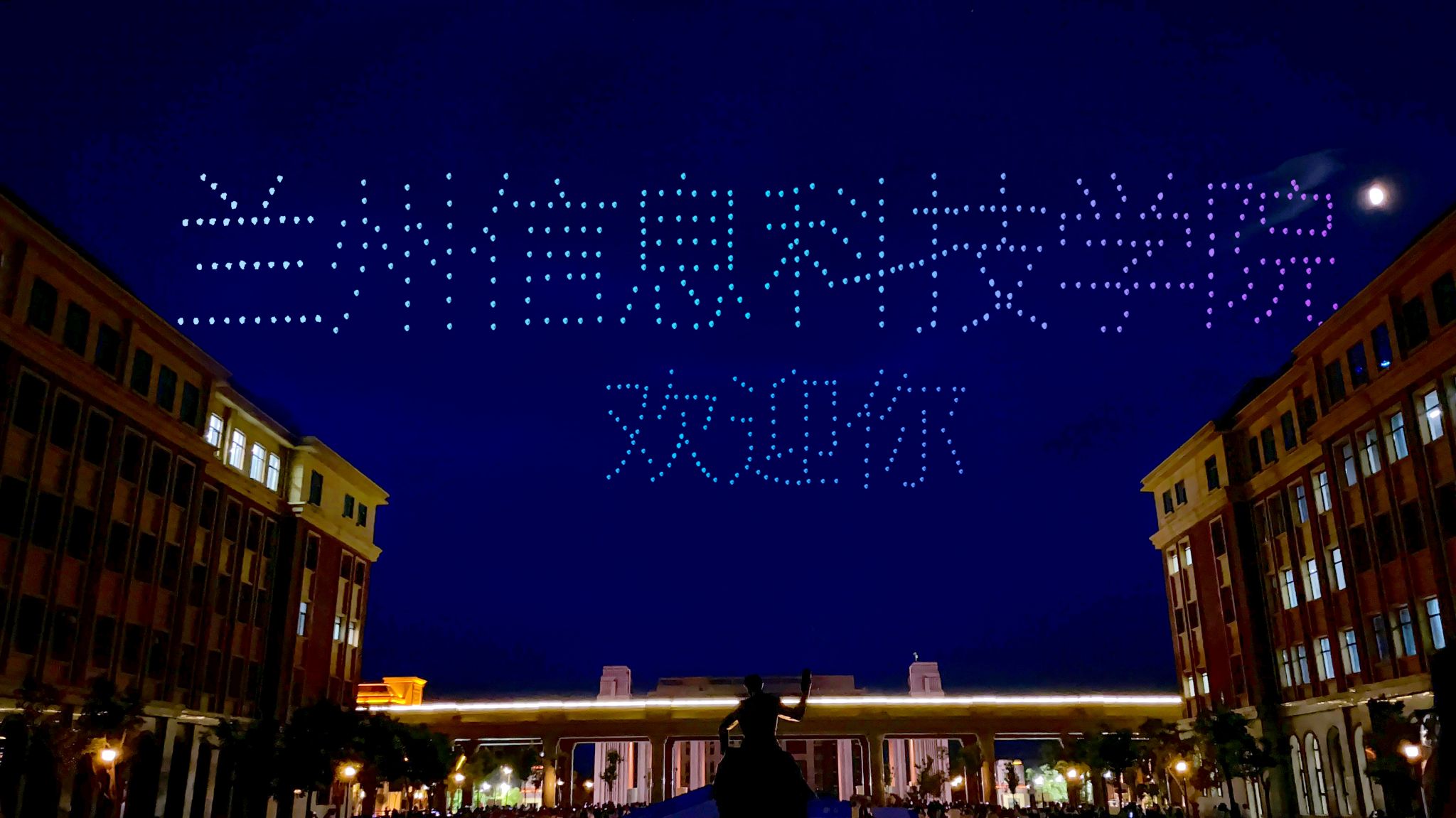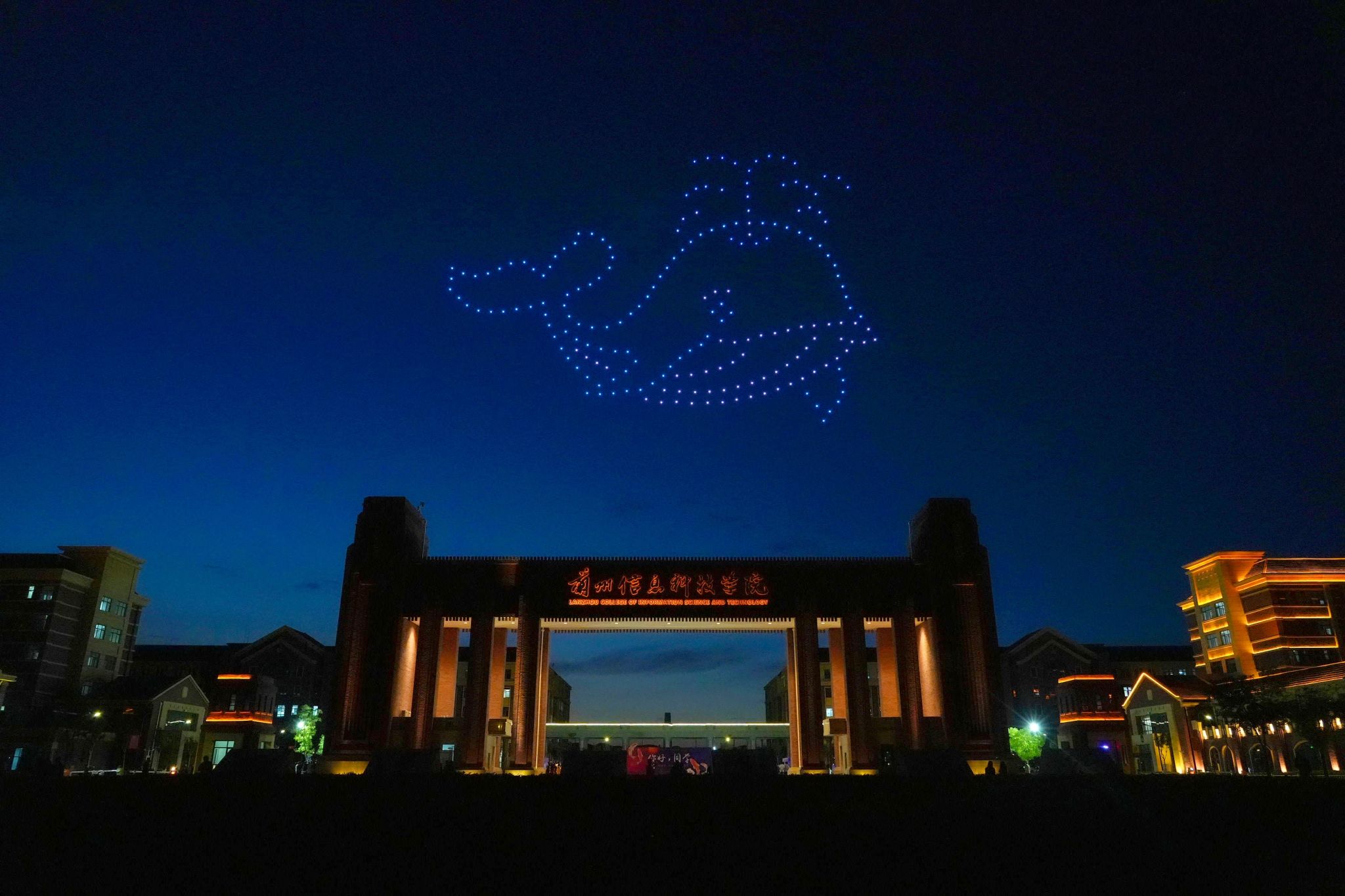 8月26日晚,200多架无人机编队亮相兰州新区职教园区大学城震撼上演璀璨灯光秀,“小鲸鱼、小鲤鱼、篮球少年”等科技炫酷灯影给当天报到的大学生带来了别具一格的精彩体验,现场欢呼雀跃,一阵沸腾!