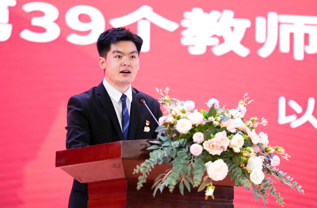 教师节到来之际,BEAT365英国官网隆重举行庆祝第39个教师节表彰大会。理事长黄炜、党委书记周怀春、校长程兰华等校领导,教职工代表、学生代表欢聚一堂,共同庆祝这个属于教师的节日,感受人民教师的荣光。