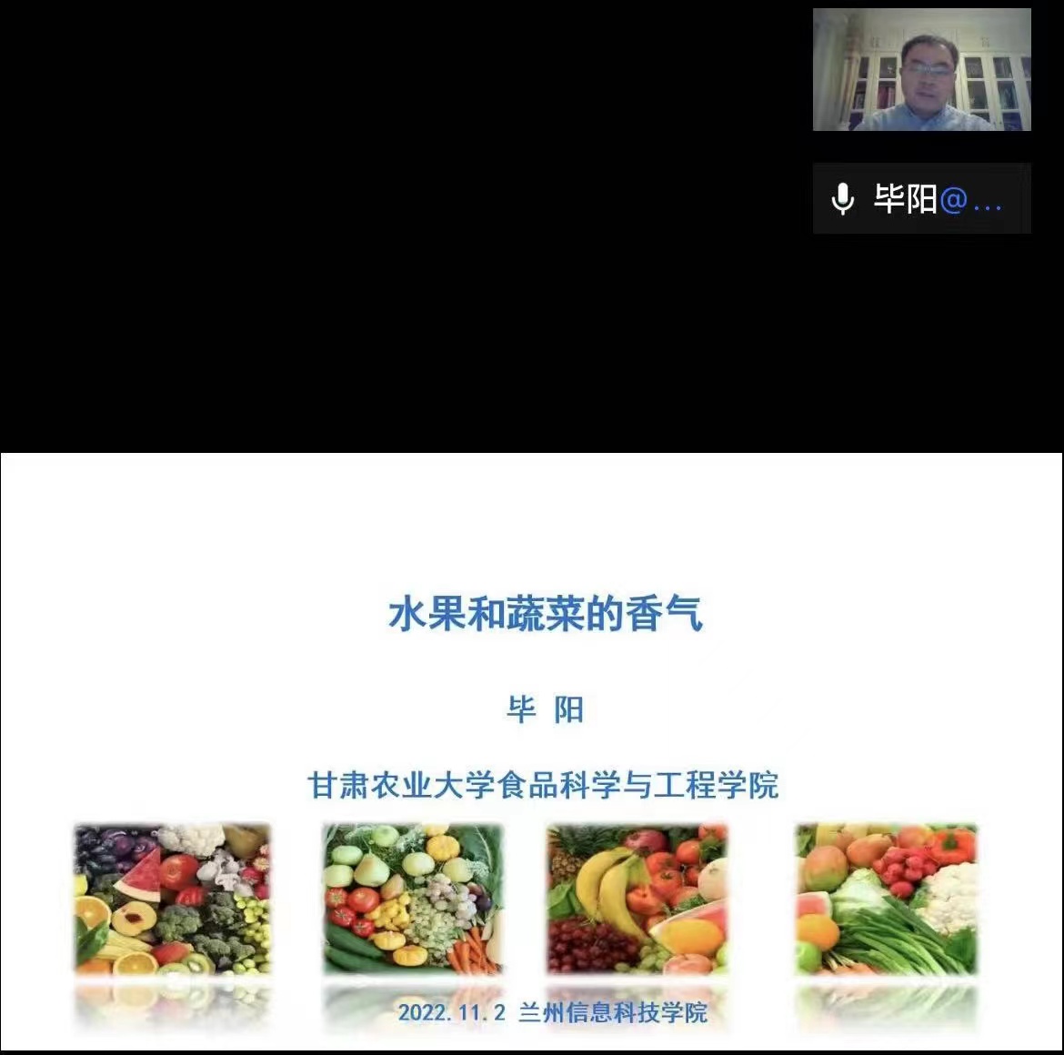 报告中,毕阳教授以《水果和蔬菜的香气》为主题,阐述了果蔬产生香气的原因主要由酯、醛、萜、醇、酮等物质造成,介绍了水果和蔬菜的香气对人体的益处,以生活中的实例深入浅出的为与会师生带来一场学术盛宴。例如,柠檬香气能够刺激呼吸中枢,改善大脑血液循环,提高呼吸系统免疫力;香气物质的种类、来源以及影响香气物质形成和释放的因素;使用气相色谱嗅闻检测技术,通过嗅味仪的闻味口辨别从色谱柱流出的物质。最后,毕阳教授介绍了目前通过现代分析技术对于果蔬中香气物质进行分离、提取和鉴定检测手段,极大的激发了与会学生的探索兴趣。